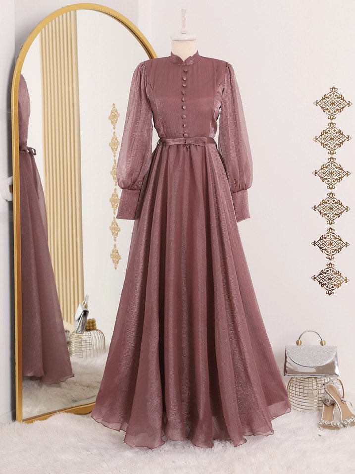 KAHVERENGİ Uzun Düğmeli Abiye Elbise