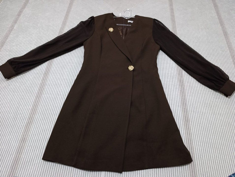 Kahverengi Uzun Düğmeli İş Kadın Ceketi
