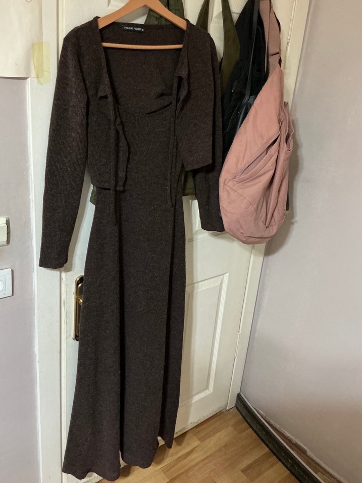 Kahverengi Uzun Elbise ve Mini Hırkası