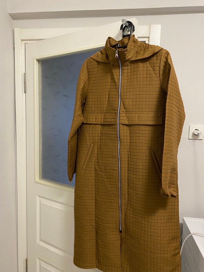 Kahverengi kapitone astarsız fermuarlı ve kesik yaka detaylıdır. Sentetik kumaştan üretilmiş, günlük kullanıma uygun, rahat kesim ve uzun kolludur. Yağmurluk olarak kullanabilirsiniz