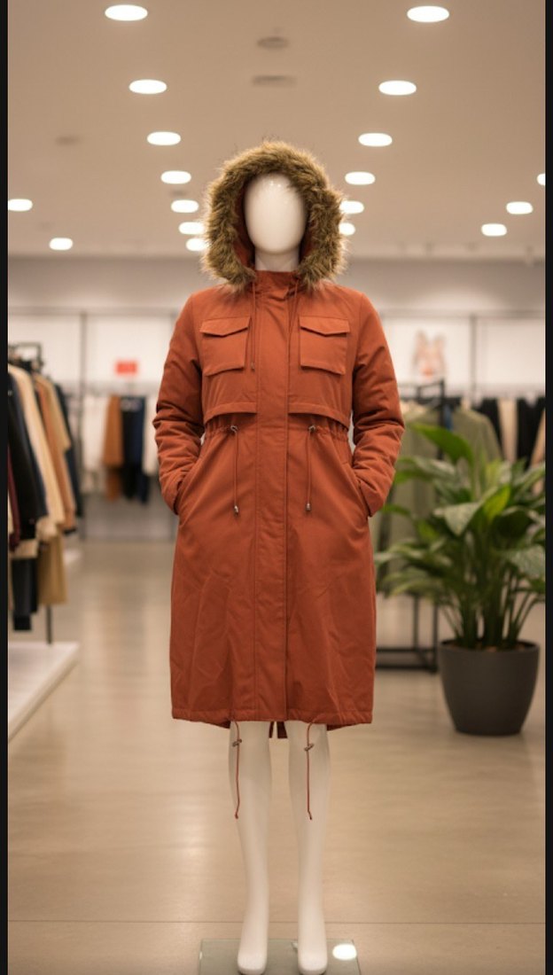 Kahverengi Uzun Kadın Mont Kürklü Kapüşonlu