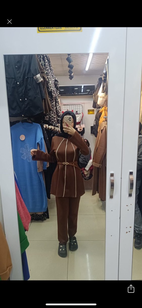 Kahverengi Uzun Kadın Takım Elbise