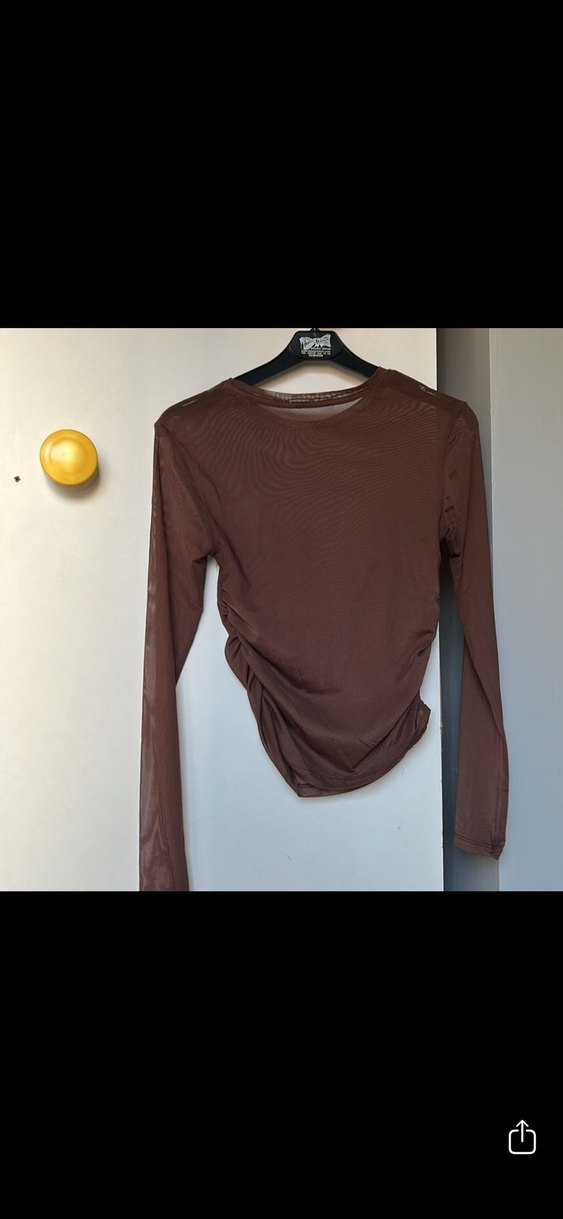 Kahverengi, uzun kollu, bisiklet yaka ve fitted kesim kadın bluz, yumuşak tül kumaştan üretilmiştir. Minimalist, desensiz tasarımı günlük ve sokak stiline uygundur. ✨
