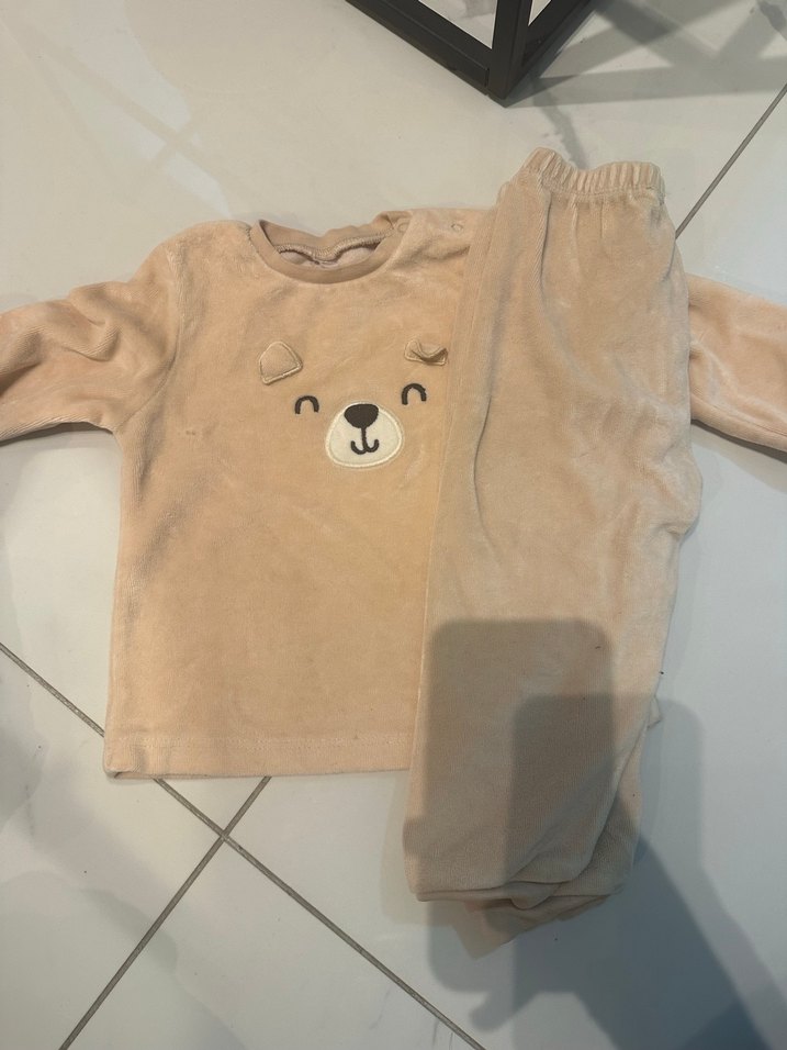 Pastel kahverengi uzun kollu, yumuşak kumaştan bebek polar takım