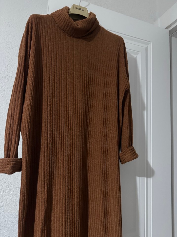 Kahverengi Uzun Kollu Boğazlı Triko Kazak