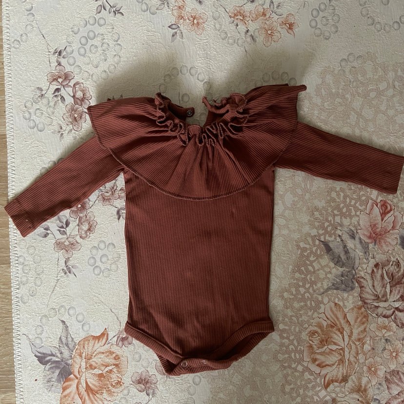 Kahverengi Uzun Kollu Fırfırlı Bebek Body