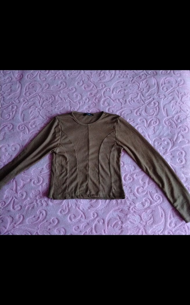 Kahverengi Uzun Kollu Kadın bluz