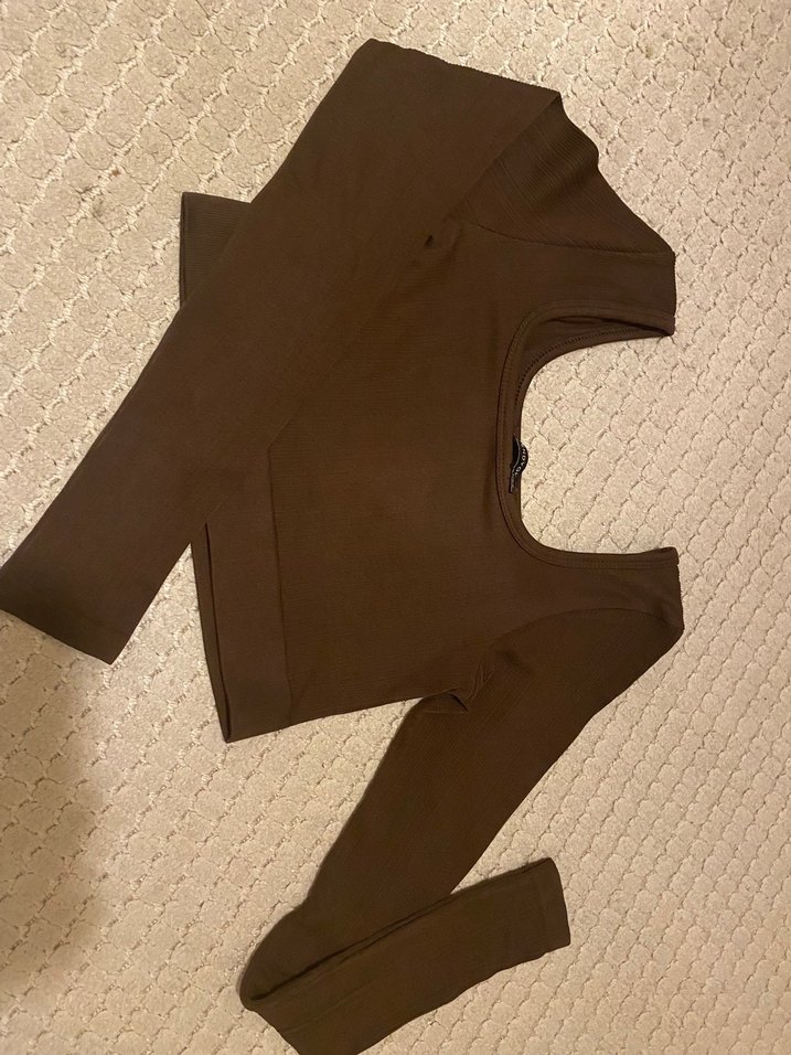 Kahverengi Uzun Kollu Kadın crop