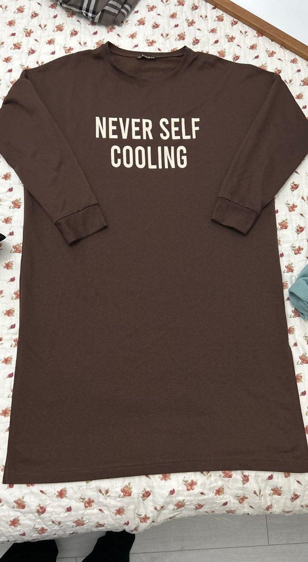 Kahverengi, uzun kollu, bisiklet yaka sweatshirt. Önünde baskılı mesaj bulunur. Yumuşak, örme kumaştan üretilmiştir. ✨ Yanlarına yırtmaç bulunur