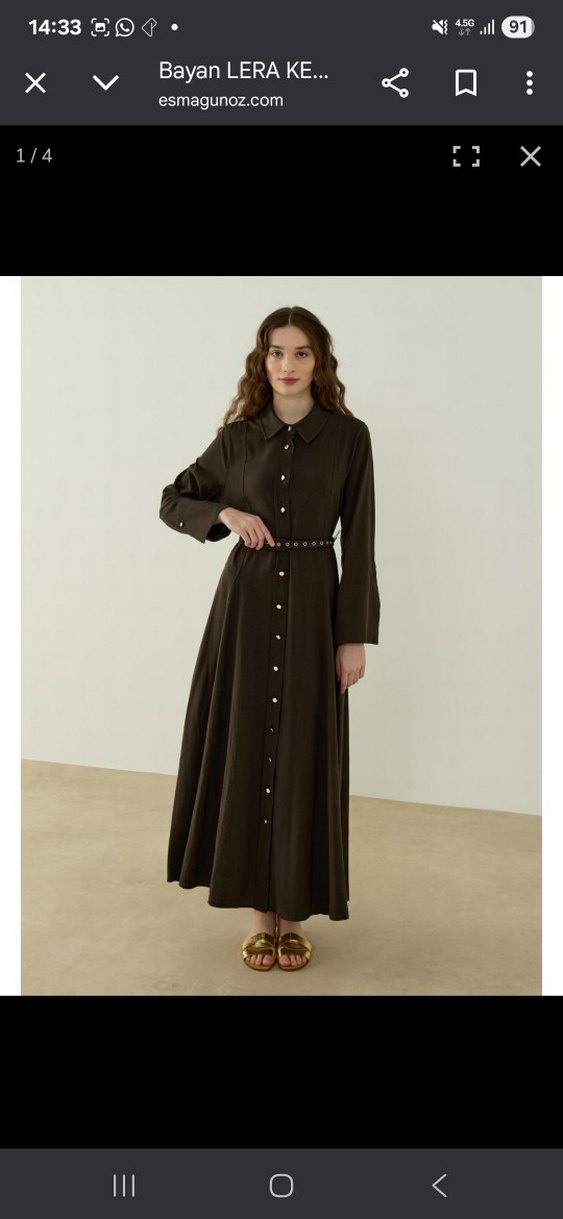 sıfır etiketli sorunsuz elbise .Kahve keten elbise göğüs 51 boy 140 cm sorunsuz kemerlidir