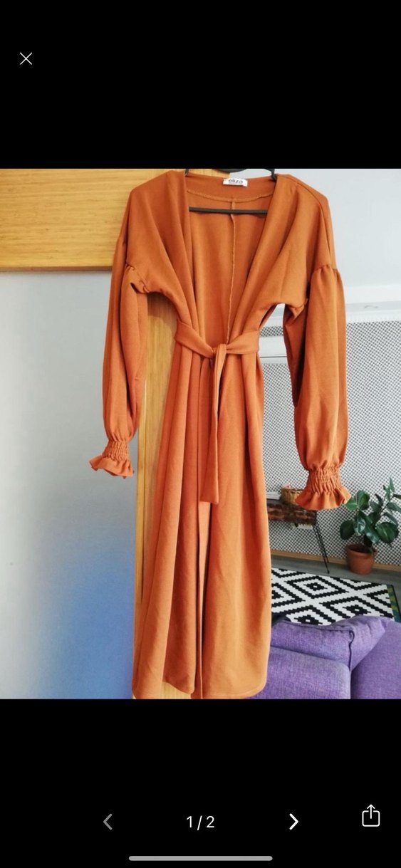 Kotla kombin yapmak ve bu rengin bir ton koyusu pantolonumla kombin için aldım.Ama hem pardesü olarak da kullanılır. Çok şık kuşağı mevcut. Daha farklısını aldığım kullanmayacağım için satışta. Marka temsili kuşaklı olduğu için 55 kiloyada olur 75 kiloyada