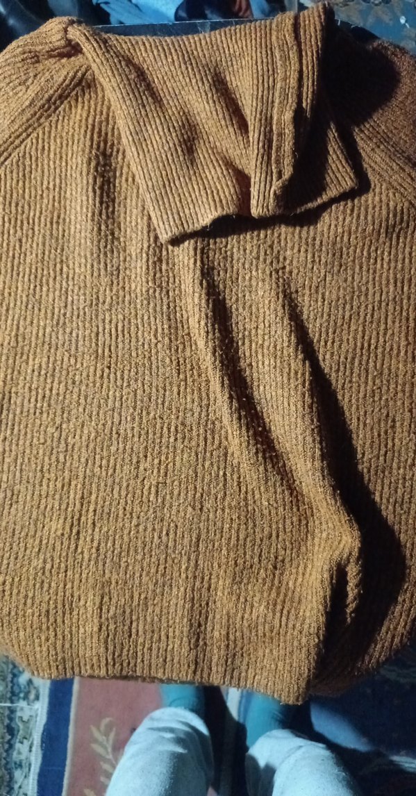 Kahverengi örme triko, boğazlı ve uzun kolludur. Yumuşak keten kumaştan yapılmış, bol kesim ve normal midi boydadır. Günlük kullanıma uygundur.