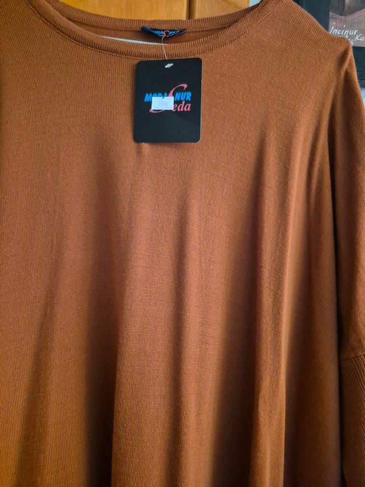 Kahverengi Uzun Kollu triko rahat tunik