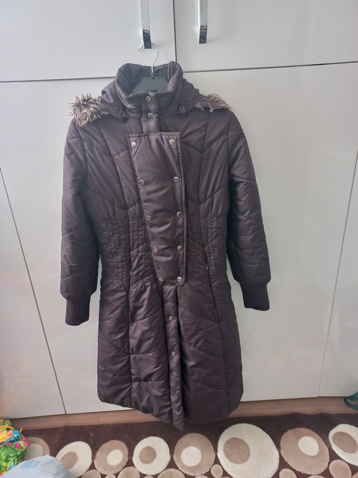 Bu kahverengi uzun ve fitted kışlık mont, yakasında kesik yaka ve kapüşonunda kürk detaylarına sahiptir. Yumuşak sentetik kumaştan yapılmış, gençler için sıcak ve rahat bir sokak stili sunar. Günlük kullanım için uygundur, uzun kolludur ve desensizdir. ❄️