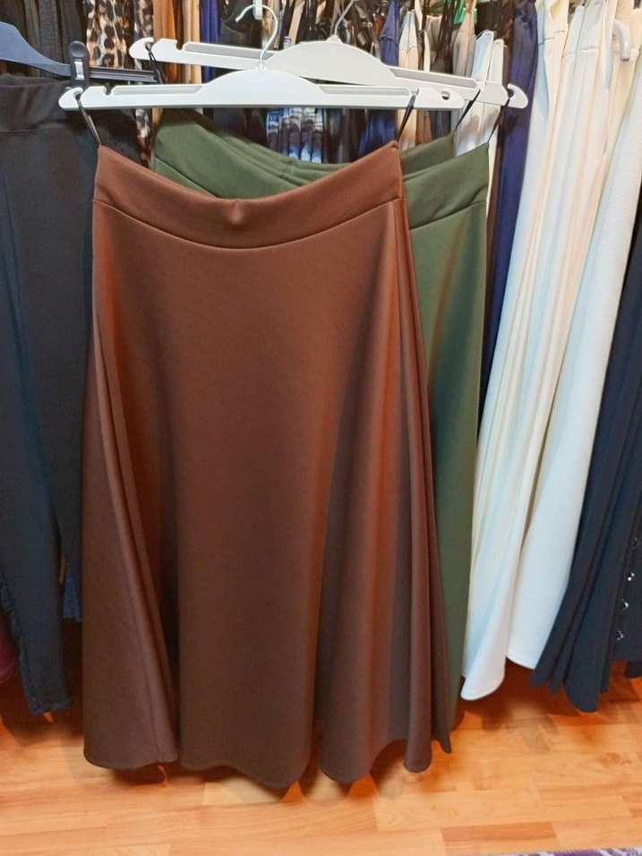 Kahverengi Uzun Salaş Kadın Etek Scuba Kumaş