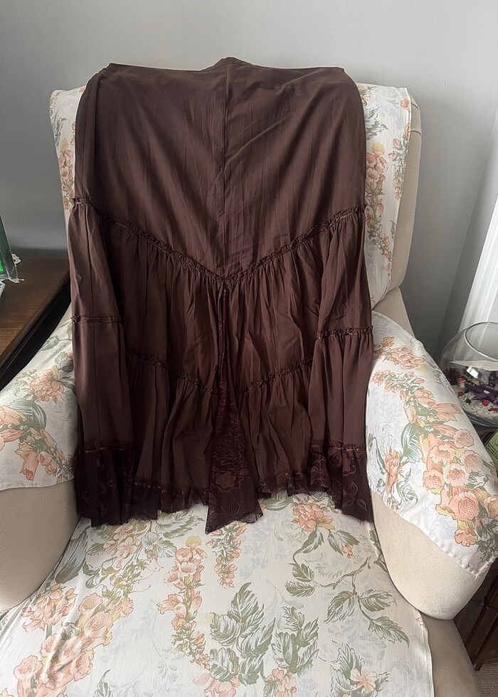 Kahverengi az kullanılmış yakmayan kumaştan uzun etek