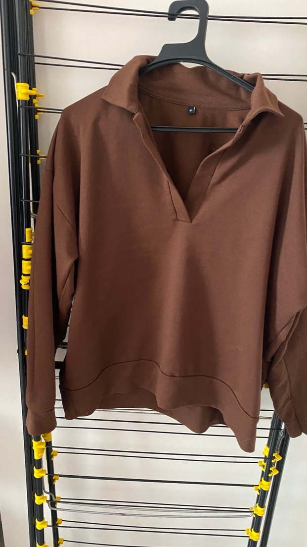 Kahverengi, V yaka ve uzun kollu kadın sweatshirt, rahat kesimiyle dikkat çekiyor. Yumuşak kumaştan üretilmiş, günlük kullanıma uygun şık ve rahat bir parça. Trendyolmilla’dan aldım.