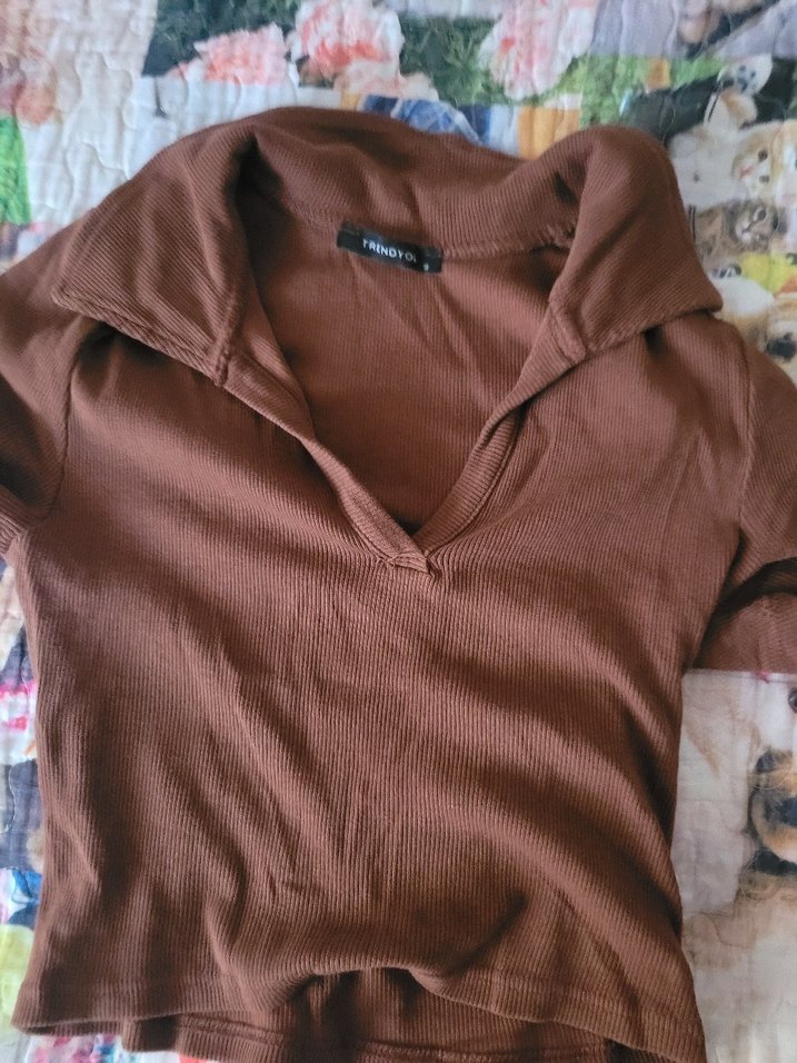 Kahverengi V Yaka Kısa Kollu Kadın Gömlek