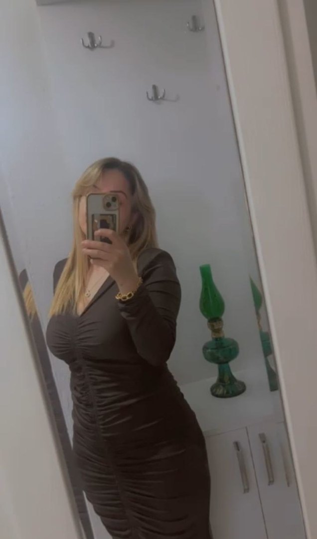 kahverengi V Yaka Uzun Kollu Mini Elbise