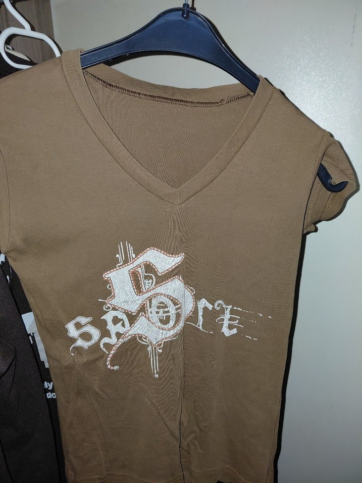 Kahverengi V yaka Vintage Kısa Kollu S/M beden için uygundur.