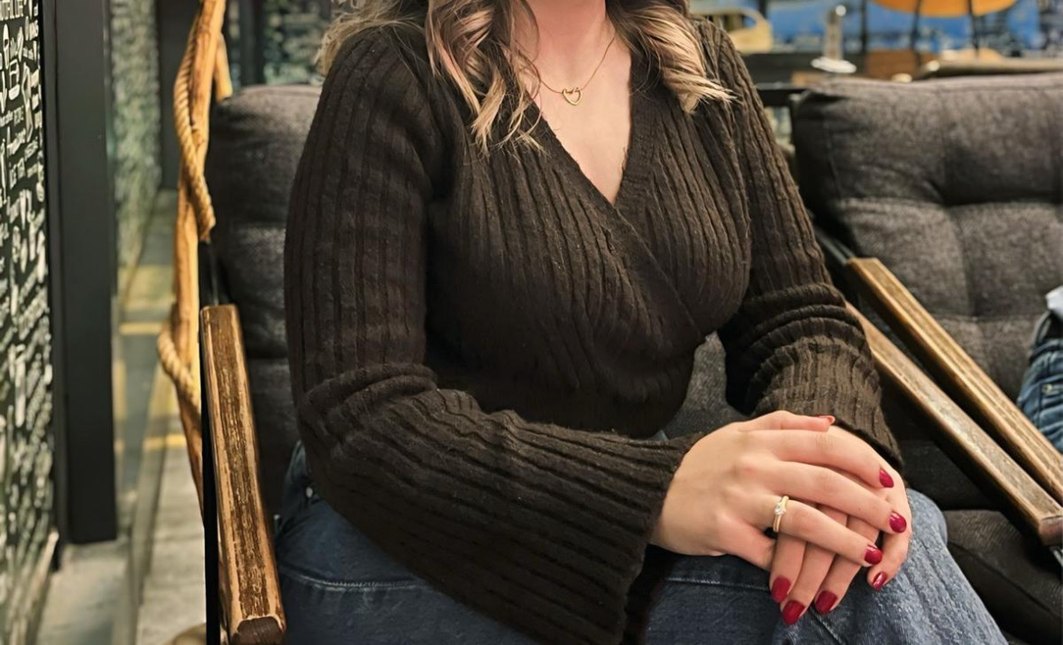 Kahverengi V Yakalı Örgü Kadın Kazak