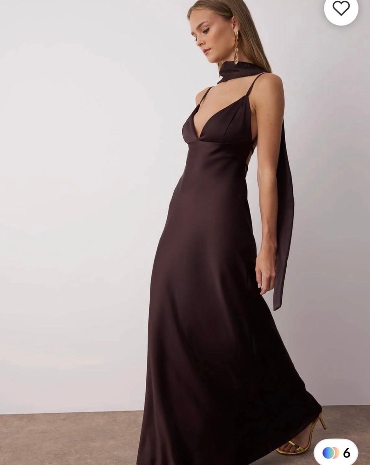 Kahverengi, ipeksi kumaştan, V yakalı ve drapeli uzun elbise. Askılı kolları ve regular kesimiyle romantik akşamlar için şık bir tercih.GİZEM ECEMİŞTEN ALINMIŞTIR.