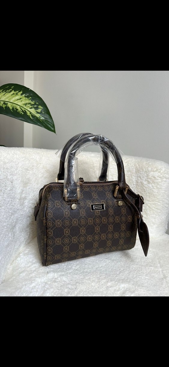 Koyu kahverengi deri, baskılı desenli ve tokalı detaylı kadın çantası. Modern klasik Paris tarzını yansıtır, günlük kullanıma uygundur. Ürün eni 20 cm dir. A+ kalitedir.