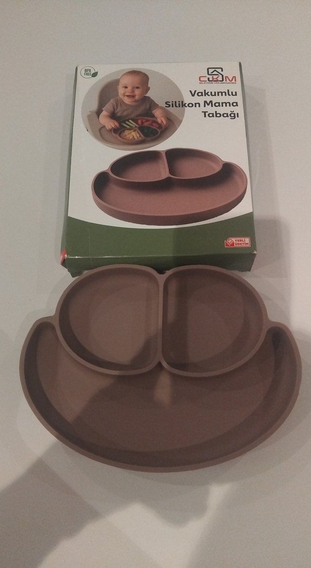 Koyu kahverengi silikon mama tabağı, vakumlu yapışma özelliği ile sabit durur. Bölmeli yapısı sayesinde yiyecekleri ayırmaya uygundur.hijyen nedeniyle iade kabul olmamaktır