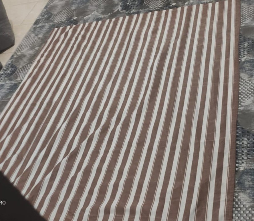 Kahverengi beyaz çizgili balkon perdesi iki kere kullanmıştır