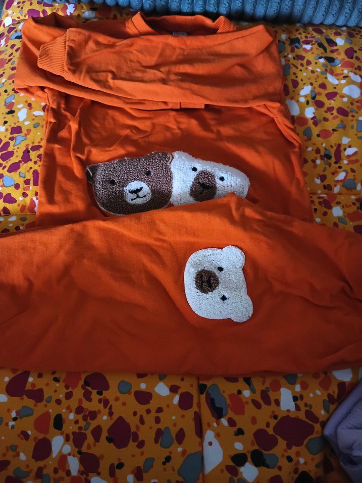 Kahverengi ve Gri Oyuncak Ayı Figürlü turuncu pijama takımı