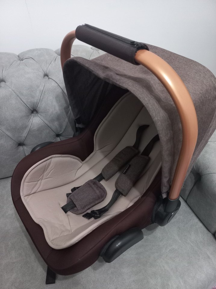 Kahverengi ve Krem Bebek Oto Koltuğu / Puset