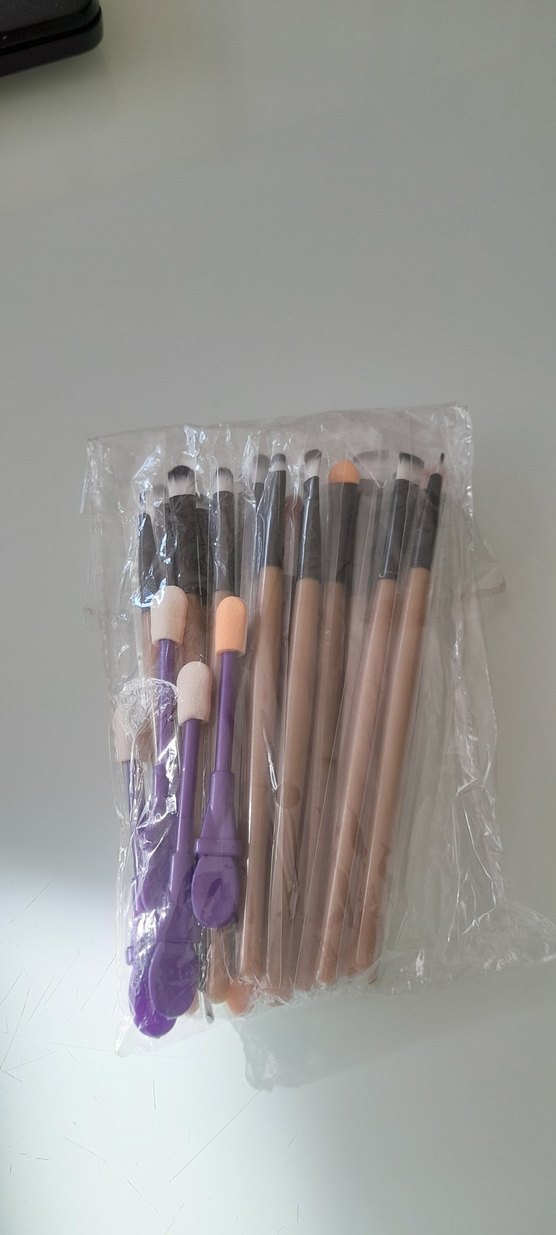 Çeşitli makyaj uygulamaları için yumuşak kıllı, açık mor renkte makyaj fırçası ve sünger aplikatör seti. 21 adet.