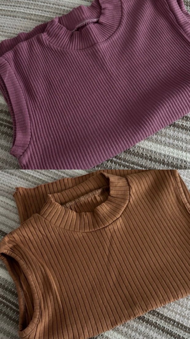 Kahverengi ve Pembe Boğazlı Kolsuz Triko Kadın Tişört iki ürün