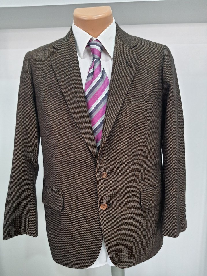 #ceket #vintage Kahverengi, regular fit erkek ceket. klasik yakalı ve iş ortamına uygun modern tarzda. kusursuz. koltukaltı en 54 cm. omuz ortadan boy 74 cm. omuzdan kol uzunluğu 61 cm. gömlek ve kravat dahil değildir.