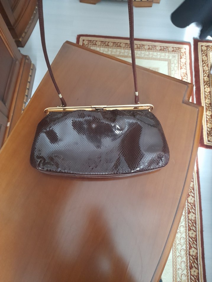 Koyu kahverengi vintage deri kadın çanta, tokalı kapanışı ve desen içermeyen düz tasarımıyla günlük kullanım için uygundur.