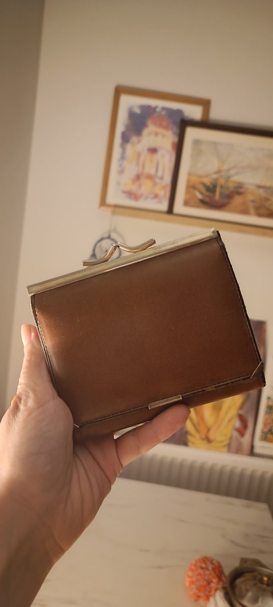Parlak kahverengi deri, tokalı kapaklı vintage tarzda kadın cüzdanı. Günlük kullanıma uygun, genç ve klasik bir görünüm sunar.