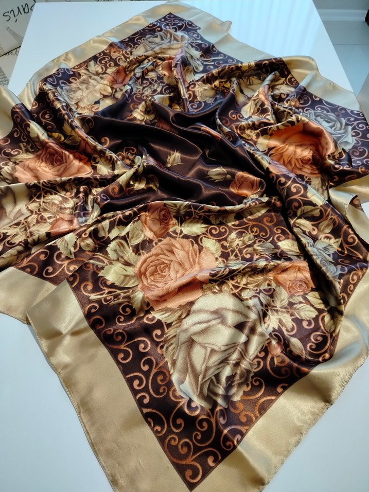 Kadınlar için, kahverengi vintage çiçek desenli eşarp. Bohem ve retro tarzlara uygundur.