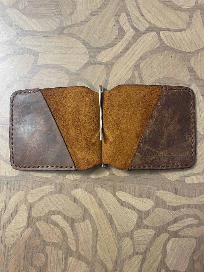 El yapımı Koyu kahverengi, desen içermeyen vintage tarzda erkek cüzdanı, metal para klipsi ile.