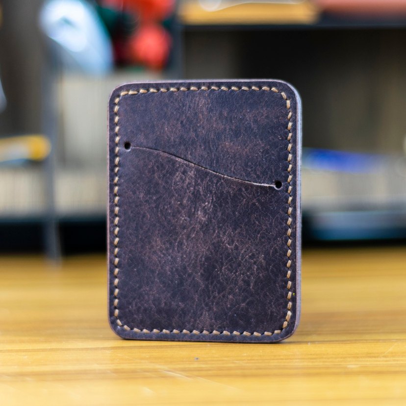 Kahverengi, desen içermeyen, vintage tarzda ve belirgin dikişlere sahip erkek cüzdanı, kontrakültür tasarımıyla öne çıkar.