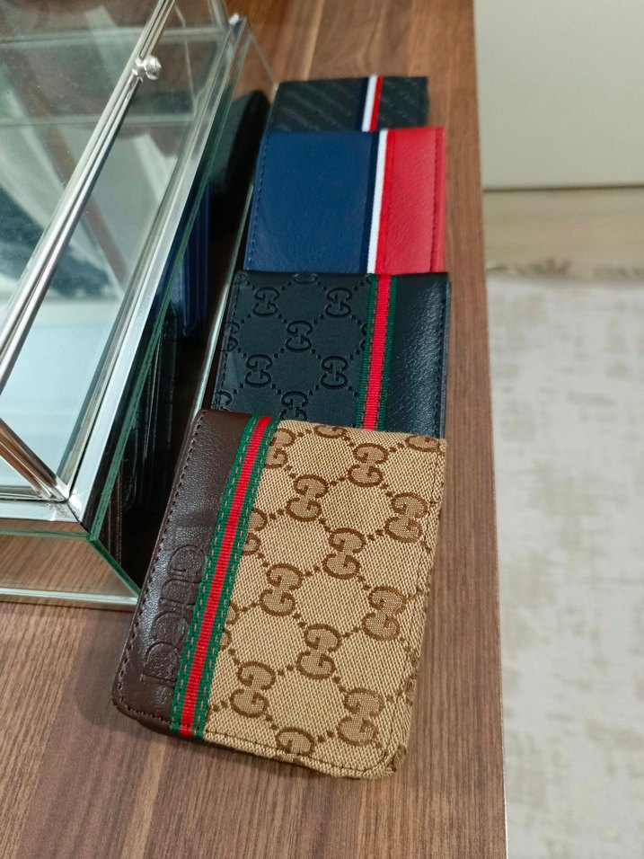 Kahverengi, baskılı desenli erkek cüzdanı. Vintage tarzı ve koyu tonlarıyla dikkat çeker, detaylı dikişlere sahiptir.