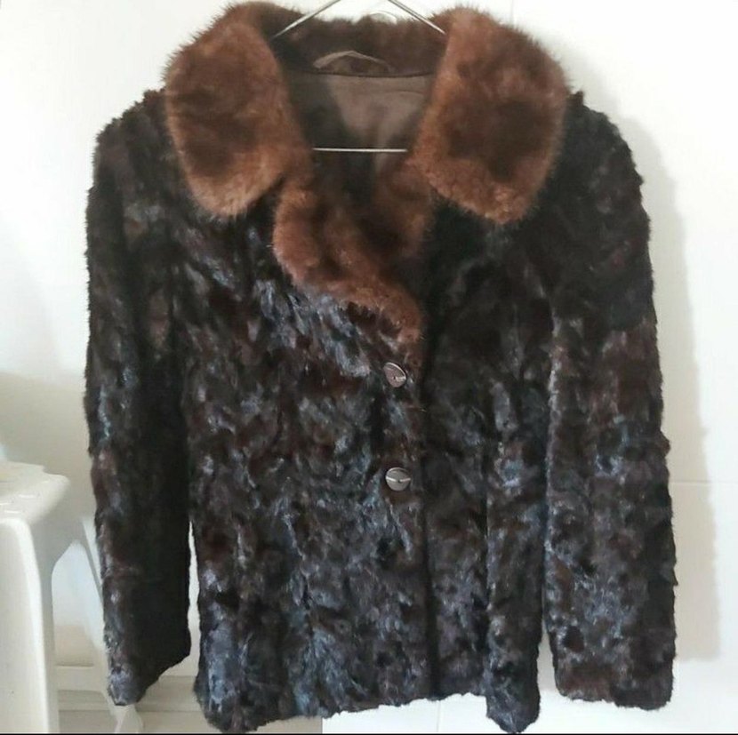 Almanya'dan alınmış, açıklı koyulu Kahverengi tonlarında, uzun kollu kürk, vintage, normal boyda ve vücuda oturan kadın kürk, prıl prıl sorunsuz.