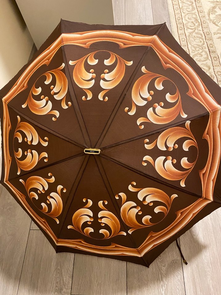 Kahverengi vintage desenli kadın şemsiye, klasik ve zarif detaylara sahiptir. Geleneksel tarzıyla şıklık ve işlevselliği bir arada sunar. ☂️Orijinal deri kılıflı,sorunsuz çalışıyor ve her çantaya sığar. Avrupa yapımı,benzerleri 5000-6000₺ civarında.Çok sıkıştığım için elden çıkarıyorum,pişman olmazsınız,evladiyelik bir şemsiye…