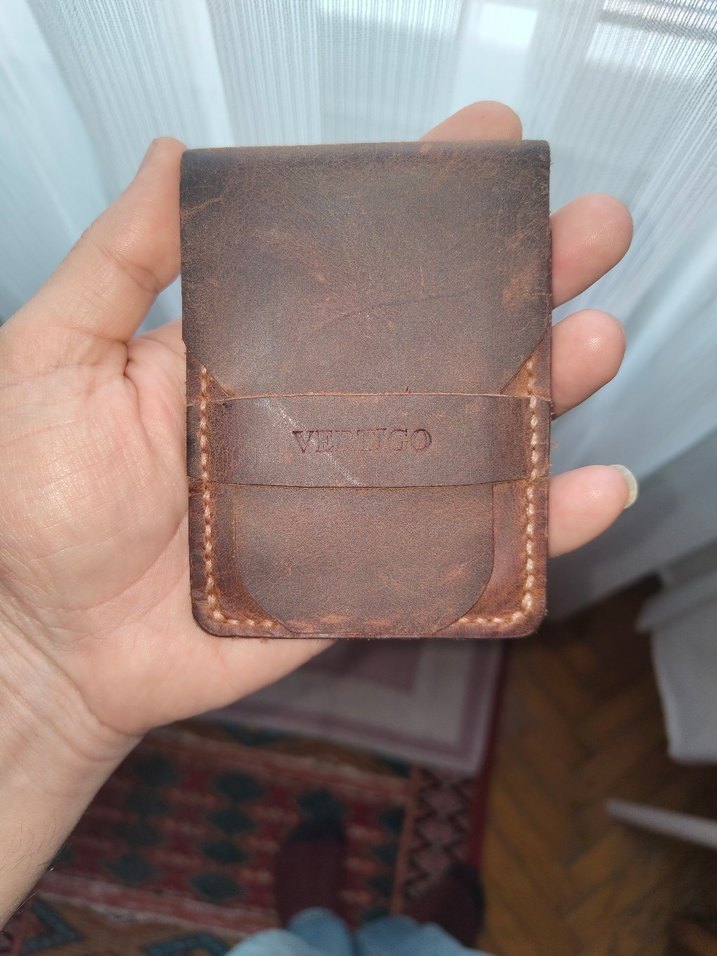 #elyapım #deri #kartlık #cüzdan Koyu kahverengi vintage erkek cüzdanı, desen içermeyen minimal tasarıma ve sağlam dikişlere sahiptir. Eskimiş görünümü karakter katar.