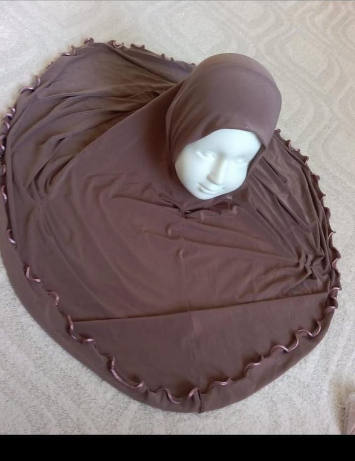 Kadınlar için kahverengi, ipek görünümlü, drapeli şal. Mütevazı ve rahat bohem tarzda, şık Kahverengi vizon uzun namaz hazır başörtü kahverengi sendy sandy namazlık