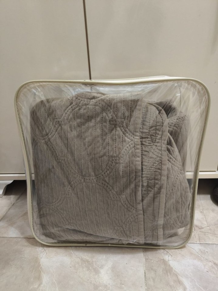 Yumuşak dokulu, kahverengi renkte ve hafif kapitone desenli yatak örtüsü. içerisinde yatak örtüsü ve 2 adet yastık kılıfı vardır. çift kişiliktir.