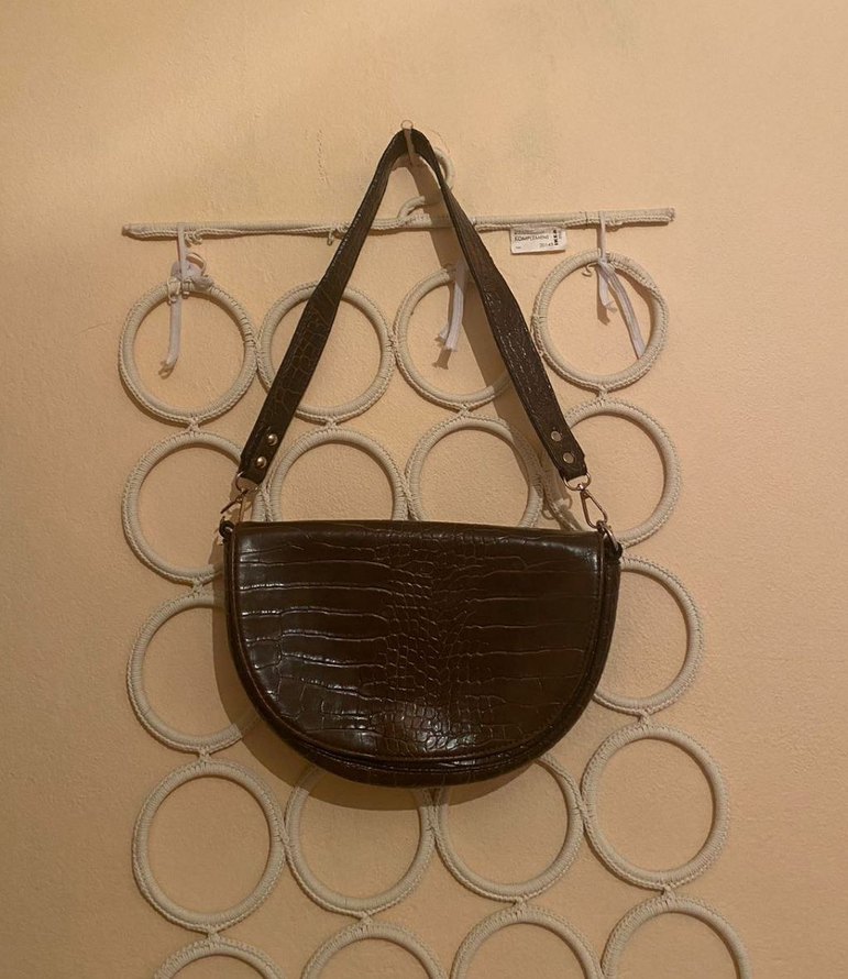 Kahverengi yılan derisi desenli deri kadın çanta, tokalı askısıyla Paris sokak modası ve bohem-retro tarzını günlük kullanıma sunar.