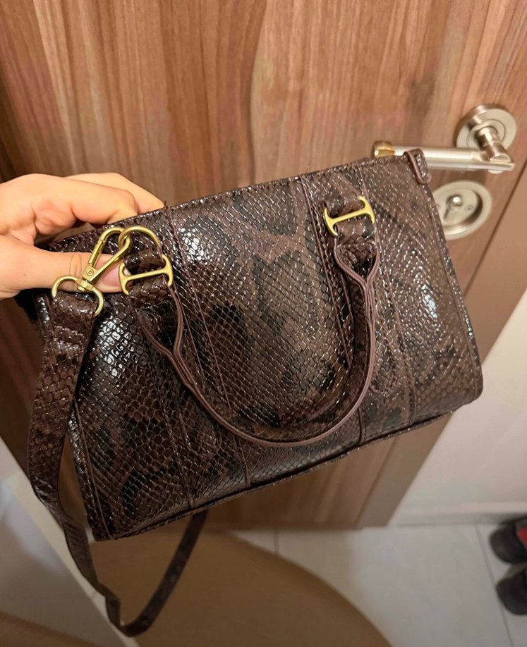Kahverengi Yılan Derisi Desenli Deri Kadın Çanta
