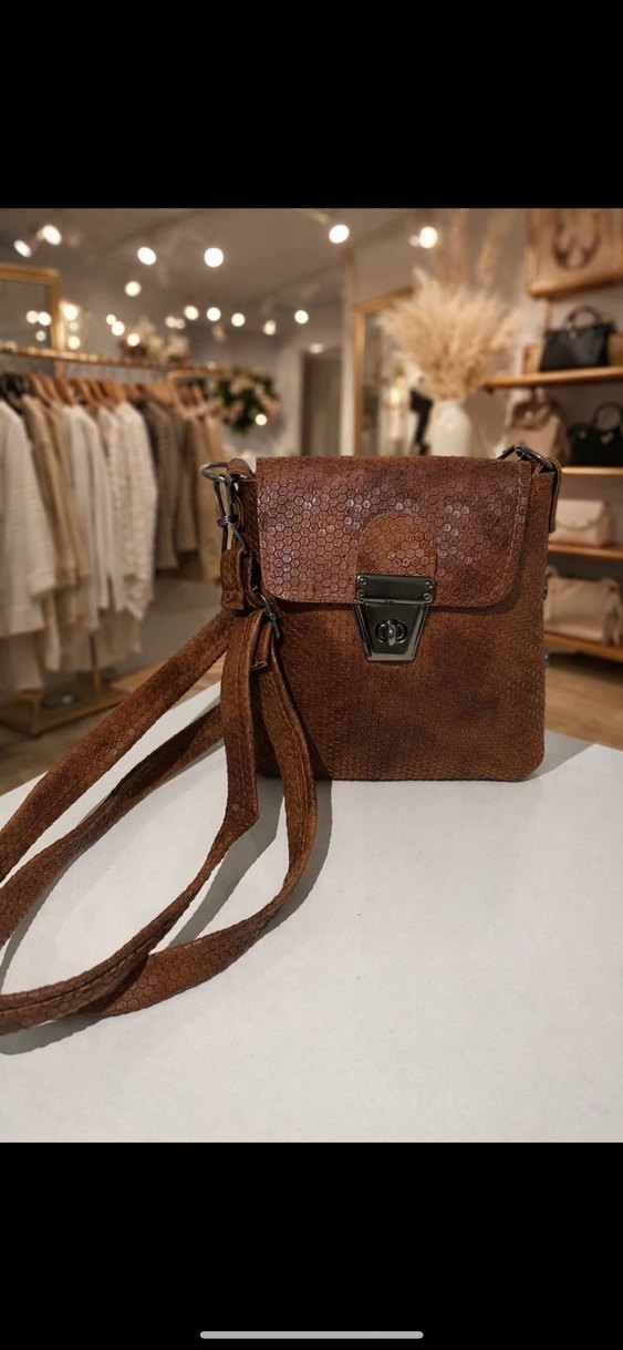 Kahverengi deri kadın çanta, yılan derisi deseni ve kemerli kapak detayına sahiptir. Uzun askısı ile bohem sokak stilini yansıtır.