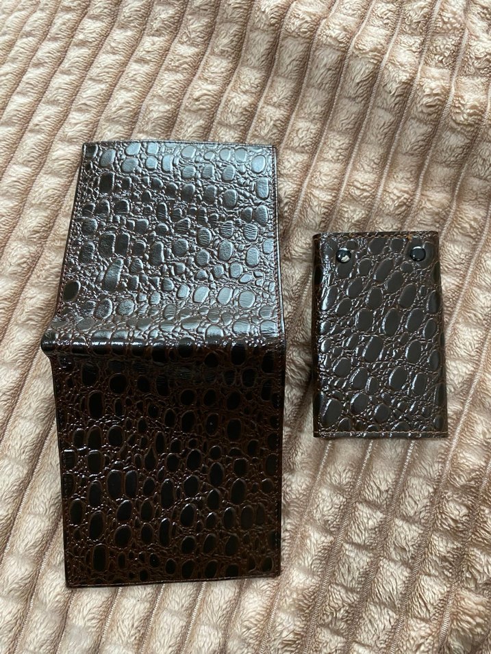 Koyu kahverengi yılan derisi desenli erkek cüzdanı ve ayrı anahtarlık , klasik ve Paris tarzı bir görünüm sunar. %100 deridir Marc’a temsili