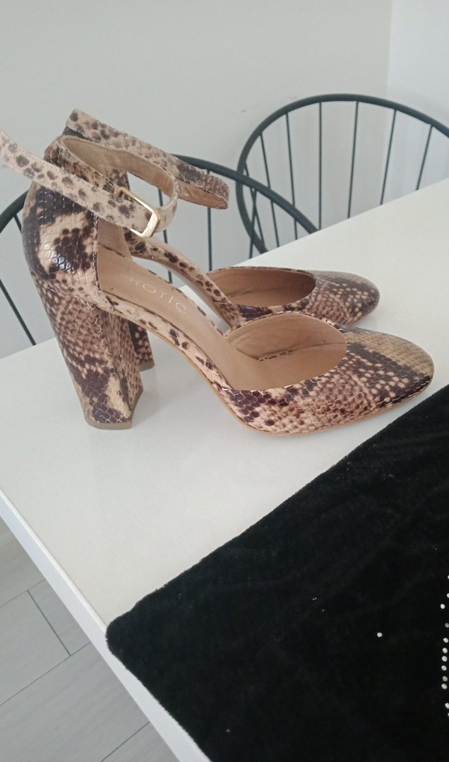 Kahverengi Yılan Derisi Desenli Tokalı Topuklu